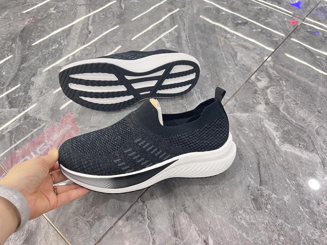 Ces chaussures sont des baskets décontractées sans lacets avec une tige en maille tricotée respirante et une semelle épaisse et colorée. Elles sont conçues pour être facilement enfilées sans utiliser les mains, une caractéristique parfois appelée technologie "Slip-ins".